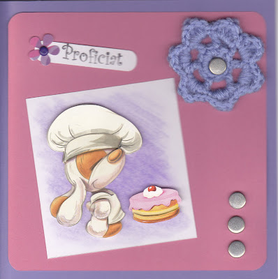 Dit is een verjaardagskaartje met een gehaakte bloem ( bedankt mams voor de bloem).
